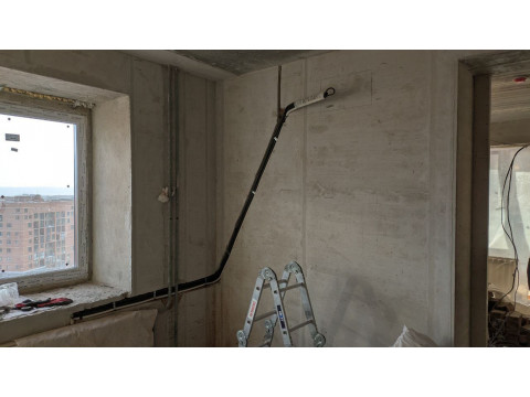 Завершающий этап. После укладки трассы стены были аккуратно заштукатурены, оставив поверхность готовой для финишной отделки.