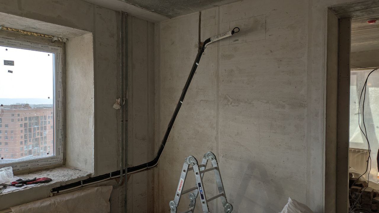 Юрий с супругой в новой квартире в Томске делают ремонт: как профессиональная бригада подготовила трассу для сплит-системы Hisense