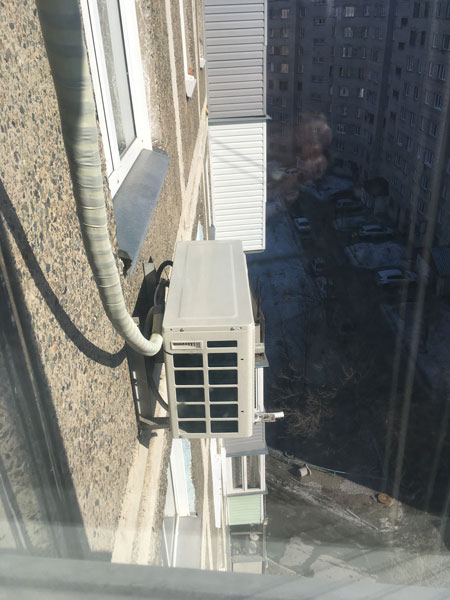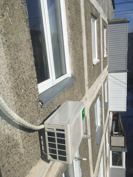 Внешний блок разместился под окнами смежной комнаты – это облегчает доступ к нему для обслуживания в будущем.