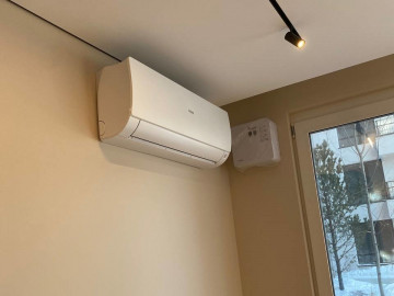 Внешние блоки Haier Flexis не только мощные и тихие, но теперь ещё и идеально вписываются в фасад! Мы выполнили аккуратную навеску с соблюдением всех норм: прочный крепёж, антивибрационные подкладки и правильный зазор для вентиляции. А специальная покраска в цвет здания делает блоки практически незаметными – никаких “пятен” на стене, только стильное и технологичное решение.