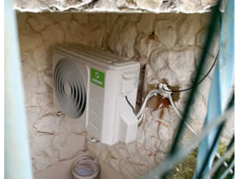 Внешний блок сплит-системы Lessar разместился в полуцокольном помещении.