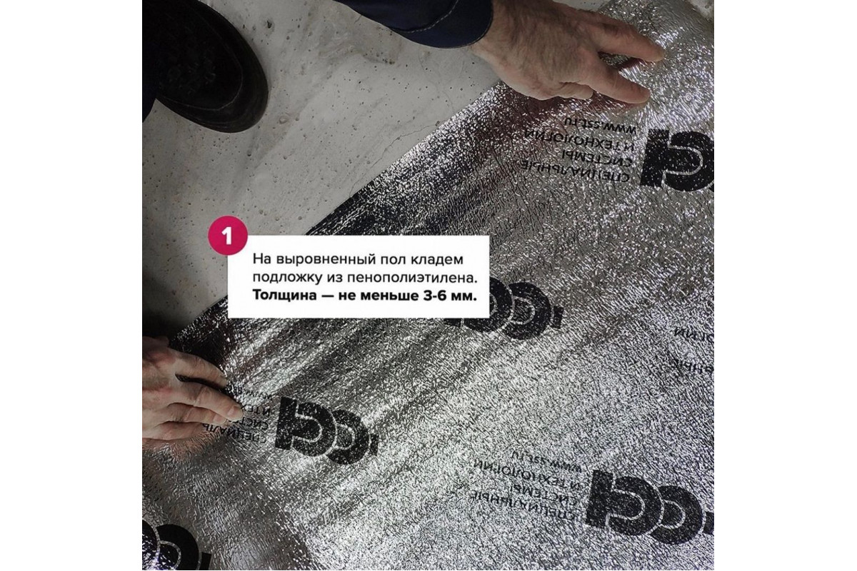 • Тонкий теплый пол на основе миниатюрного нагревательного кабеля, уложенного между слоями фольги.