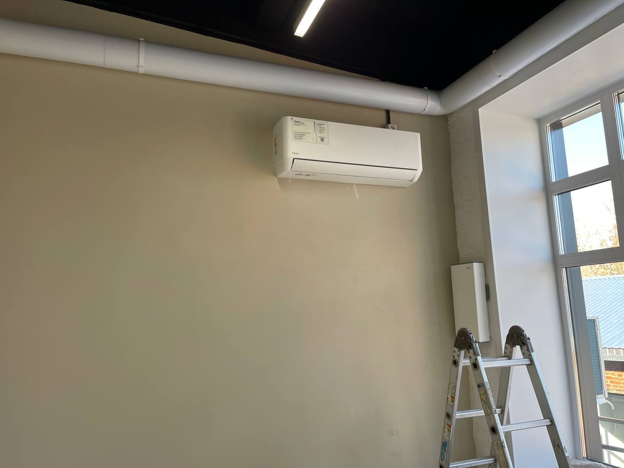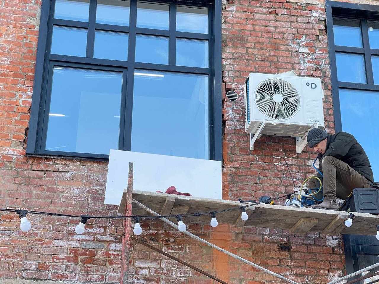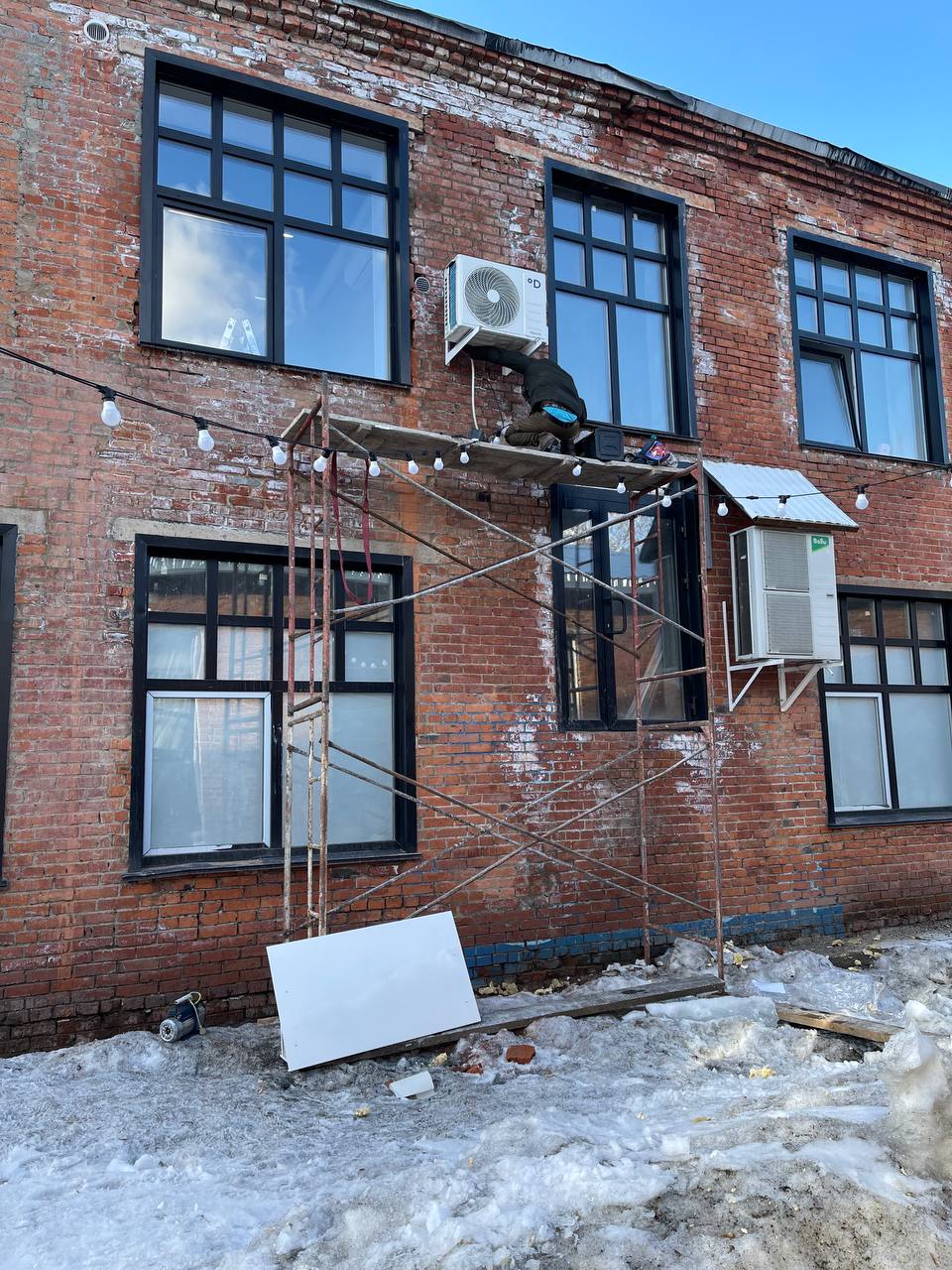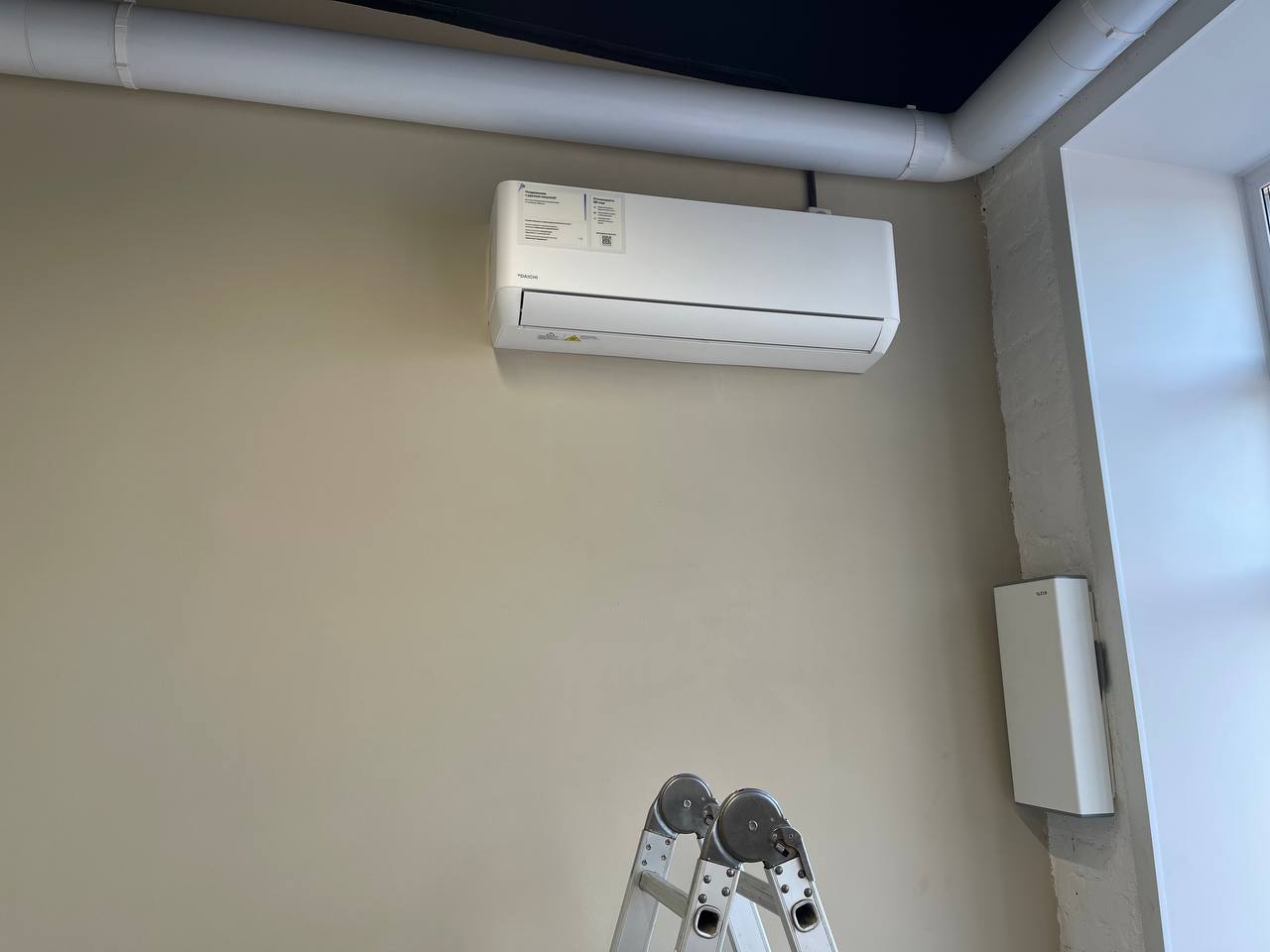 Первым делом мы установили трассу для кондиционера, потом спустя неделю повесили кондиционер Daichi. Приехали в 14:00 установили леса, так как автовышка бы не подъехала (мало места). Мы произвели установку кондиционера Daichi быстро и качественно в офисе Арпине на улице Мичурина 120Б офис 105. Наша команда специалистов провела работы в кратчайшие сроки и обеспечила безопасность и качество установки. Арепине была очень рада, что мы смогли создать комфортные условия для работы в его офисе.
