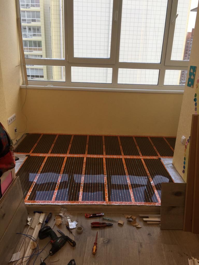В конкретном случае обогрев пола был выполнен с помощью инфракрасного пленочного теплого пола EASTEC Energy Save PTC 220Вт (Ширина 80см) с эффектом саморегуляции на 30%, который позволяет значительно снизить вероятность перегрева пленки и напольного покрытия.