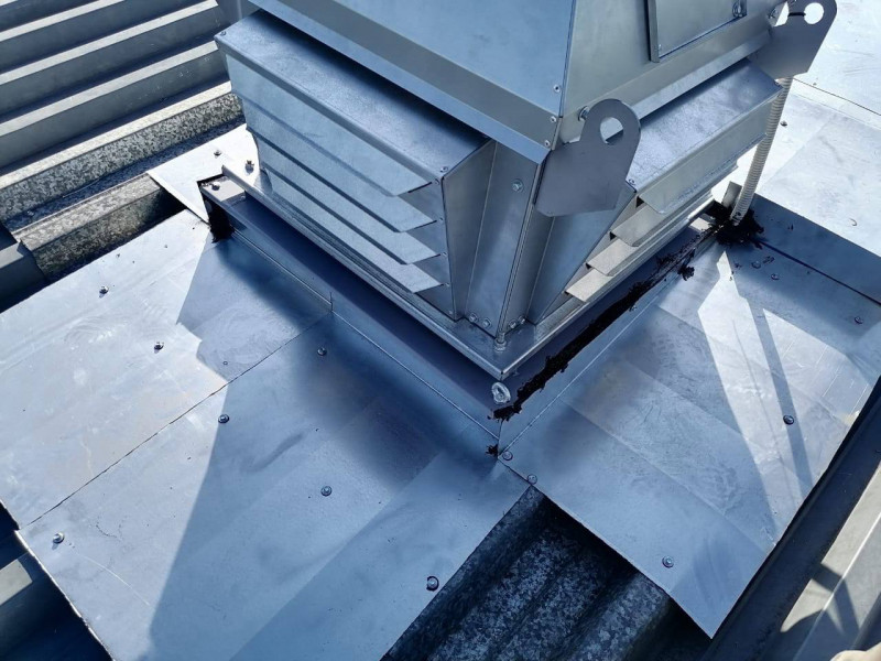 Было смонтировано два крышных вентилятора с гидроизоляцией кровли, а также установлены семь осевых вентиляторов. Дополнительно осуществлена прокладка питания и варка рам.