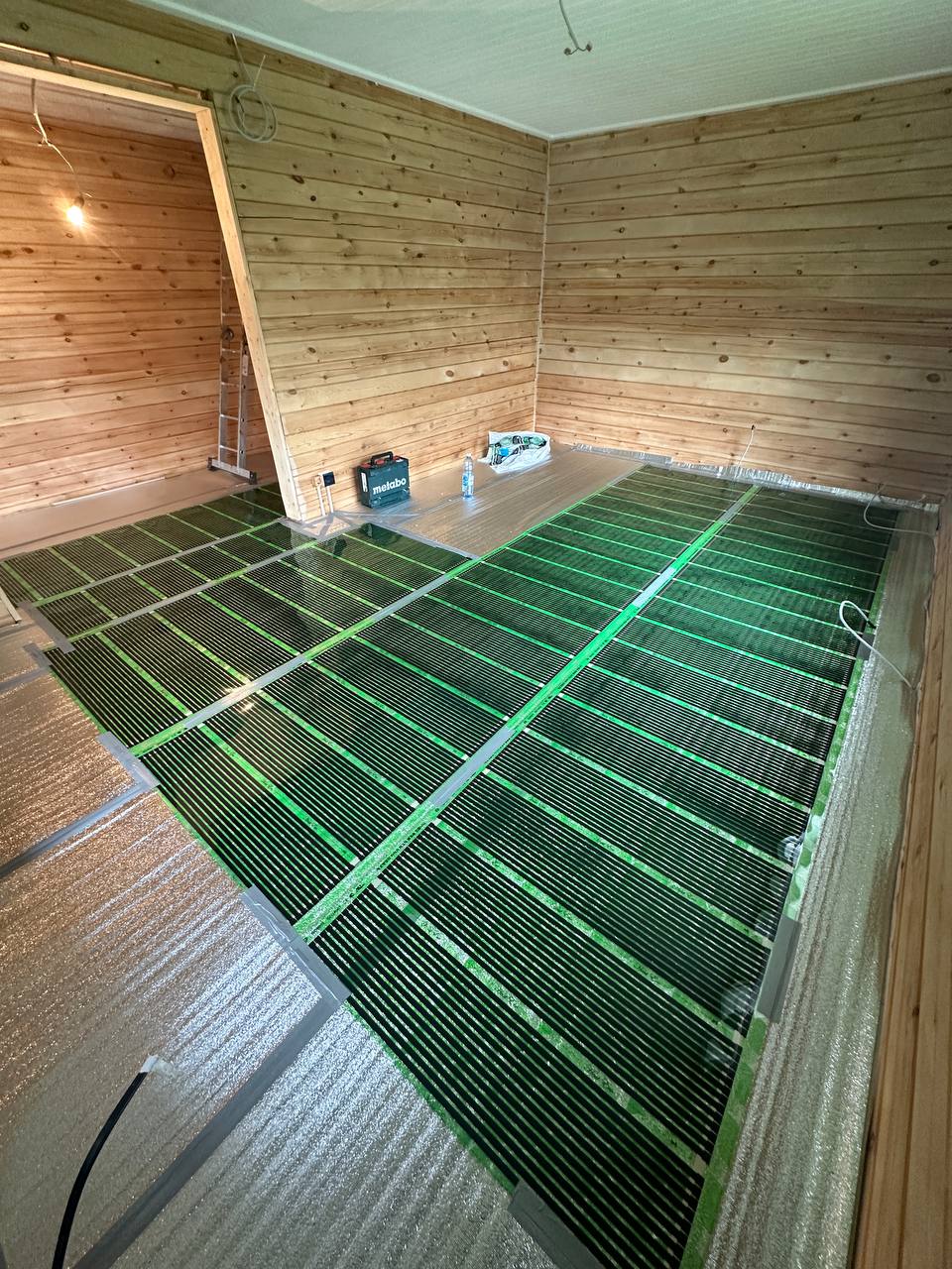 Для реализации проекта была выбрана инфракрасная пленка Russian Heat Green Heat Eco. Это передовое решение, которое обеспечивает равномерное распределение тепла по всей поверхности пола.